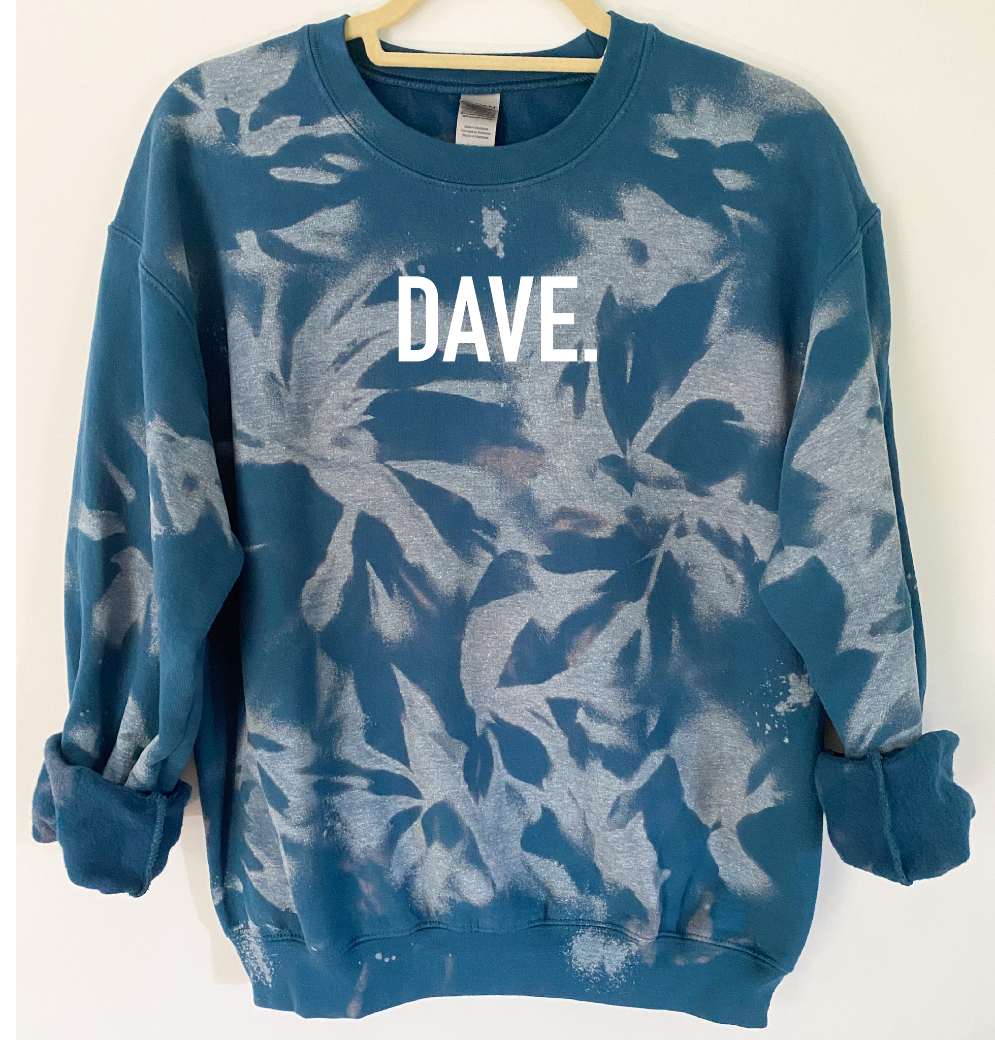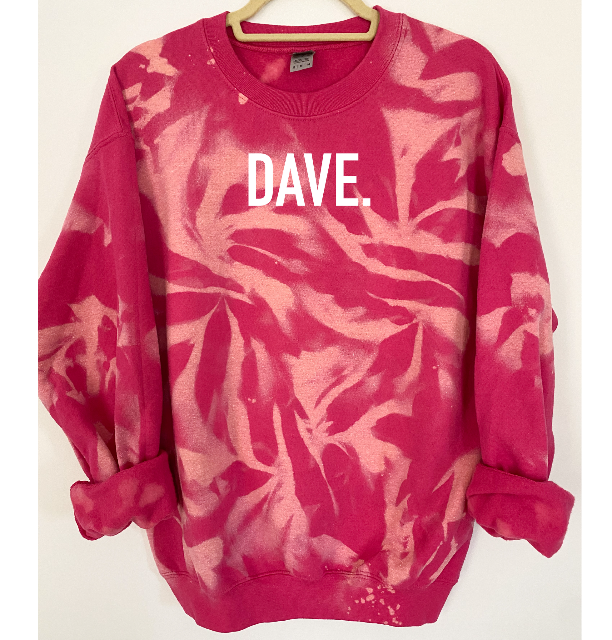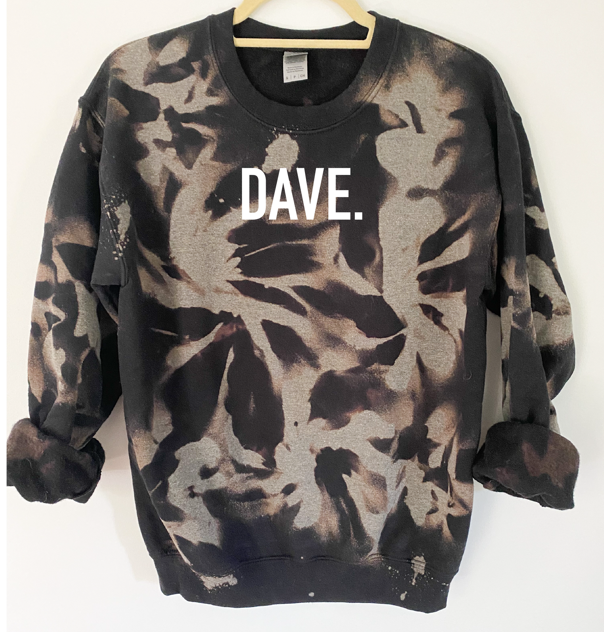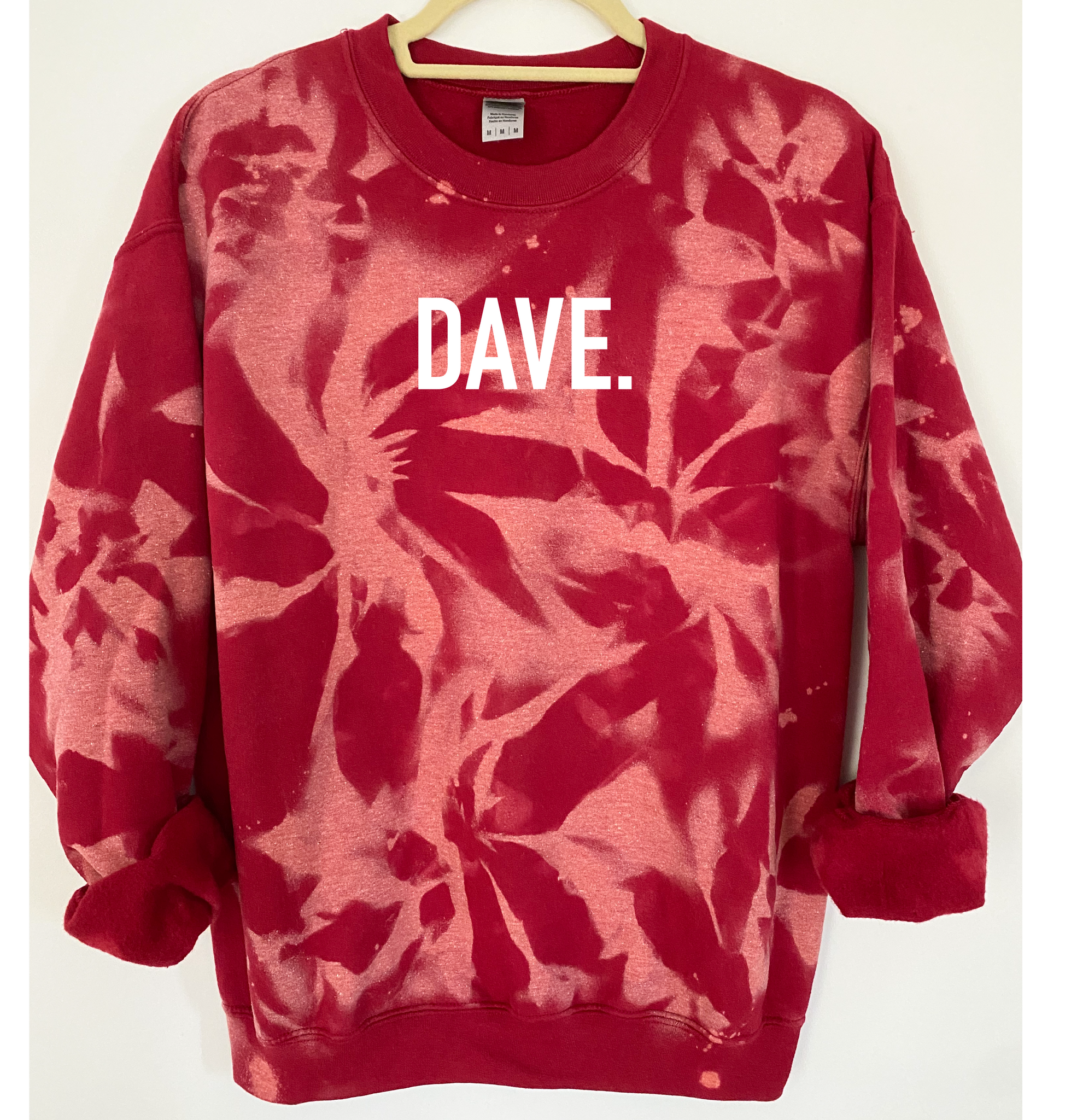"DAVE." is ironed on with Premium Vinyl. Soft, stretchable and fade resistant. Turn the garment inside out and machine wash with cold water. Tumble dry low.