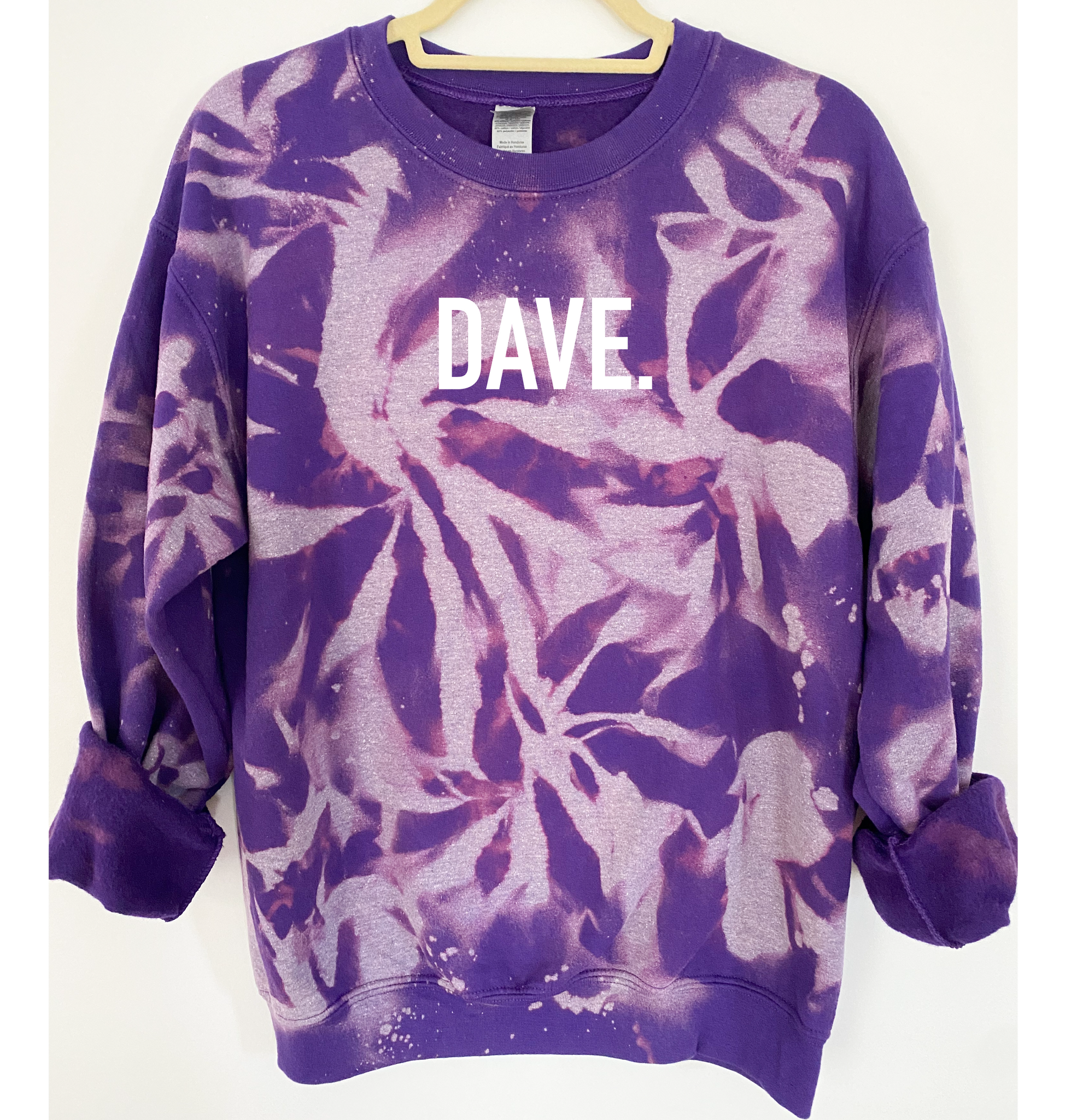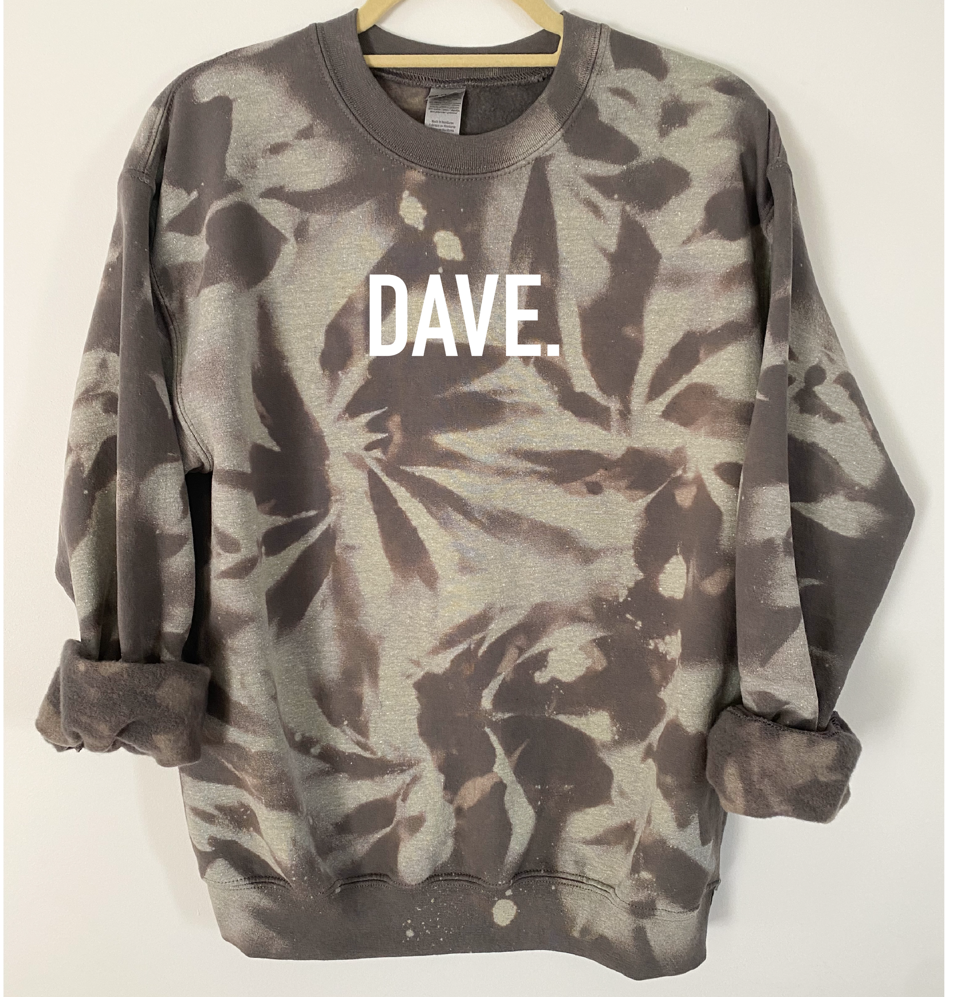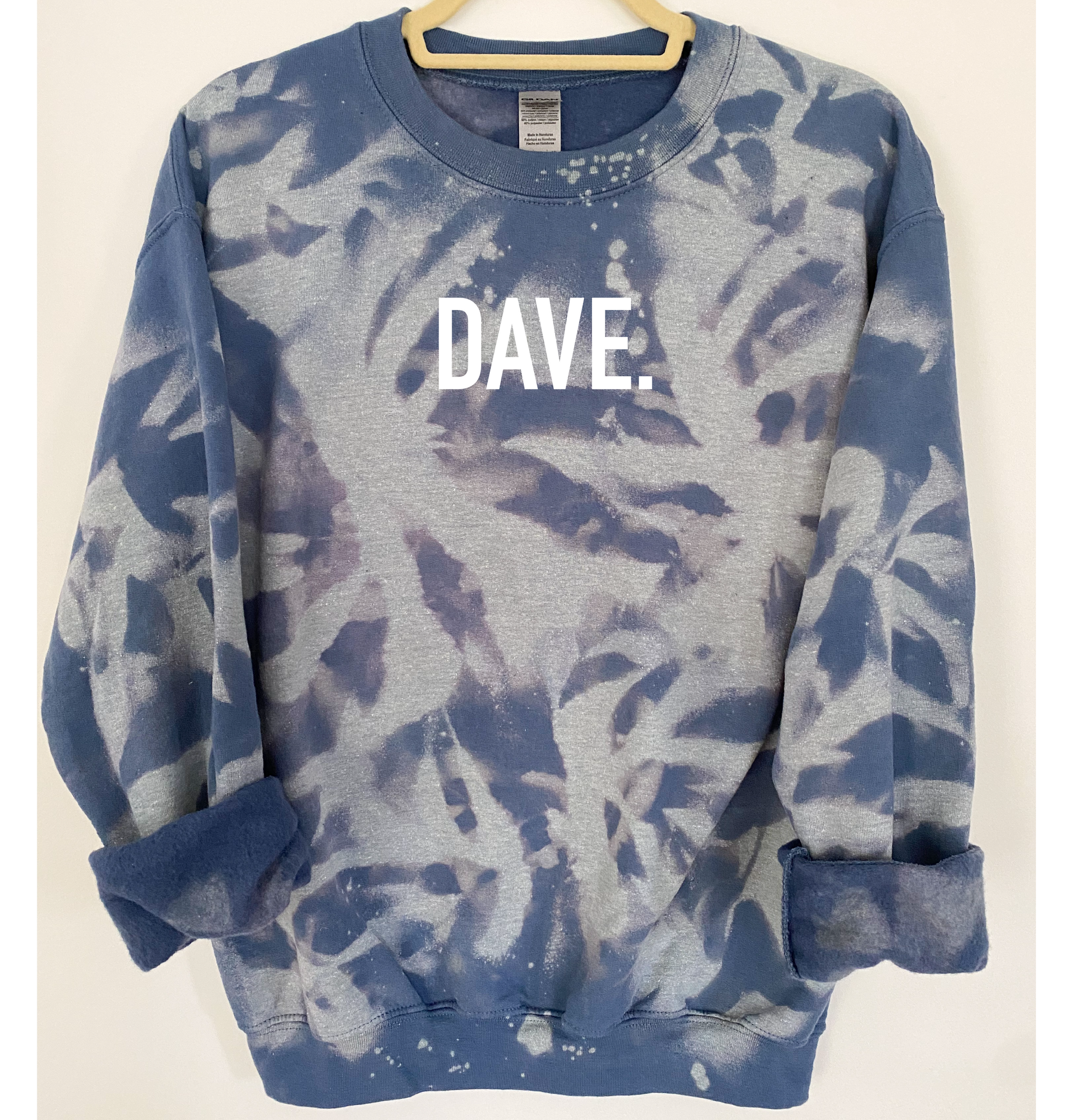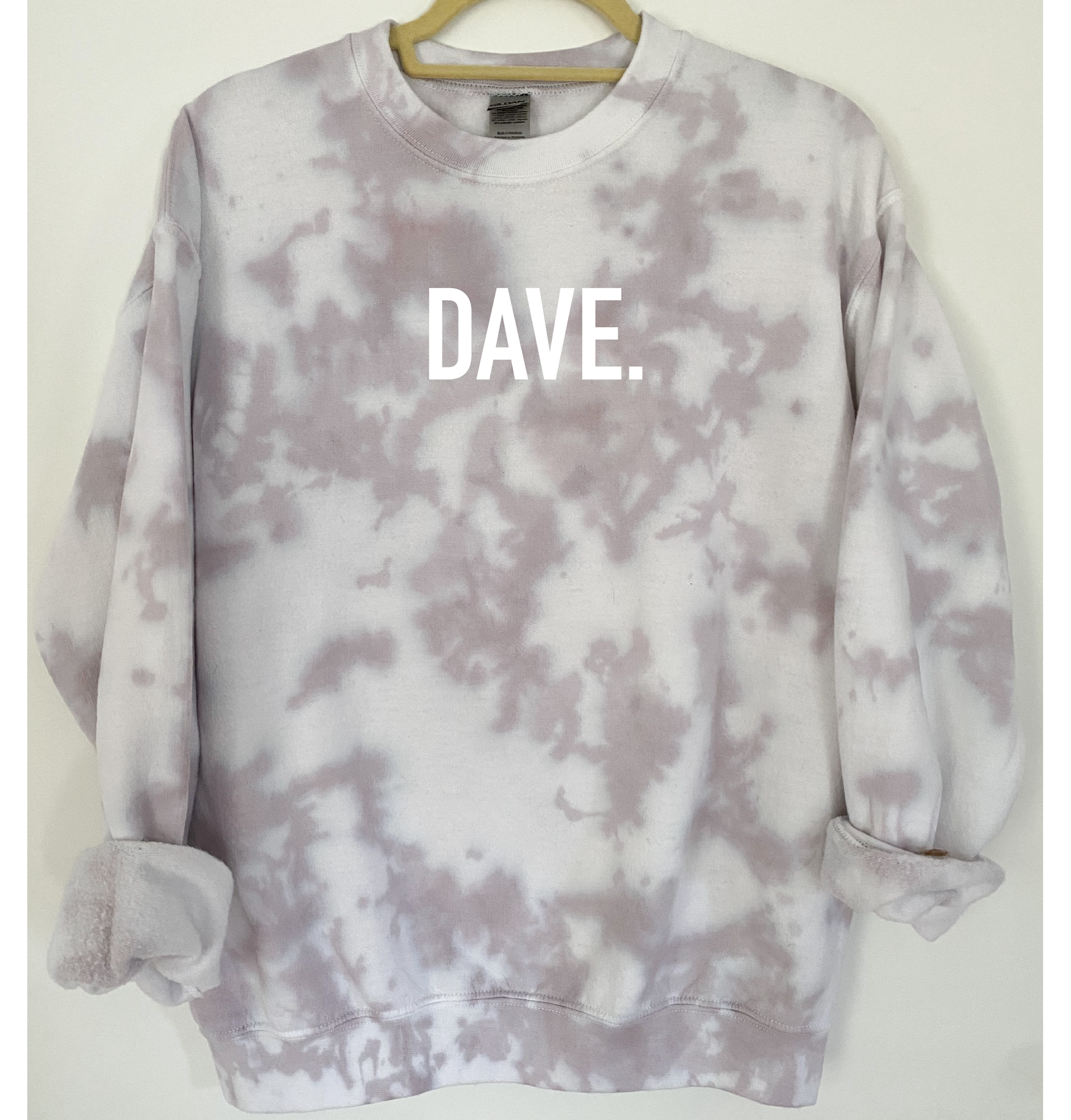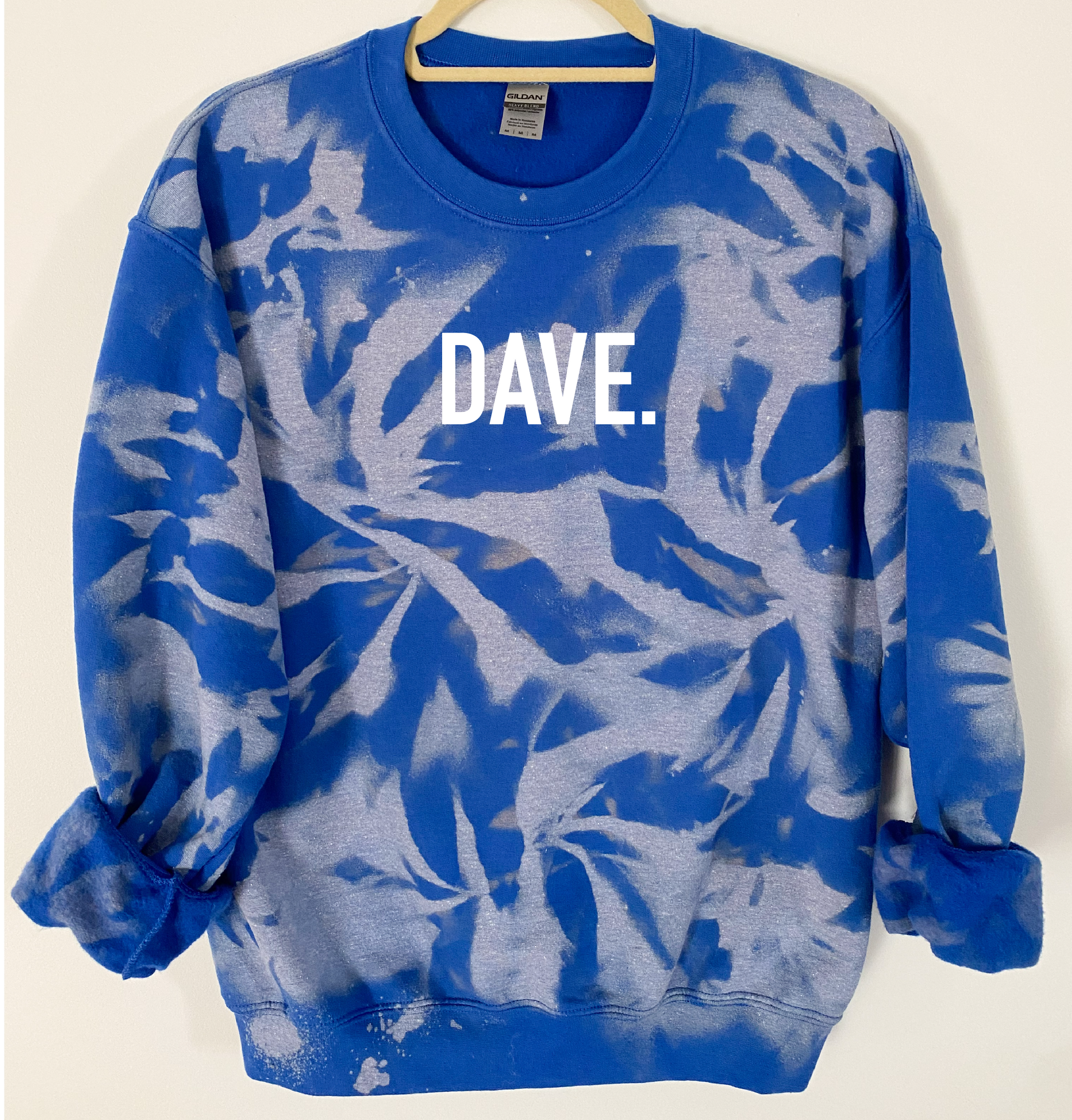 "DAVE." is ironed on with Premium Vinyl. Soft, stretchable and fade resistant. Turn the garment inside out and machine wash with cold water. Tumble dry low.