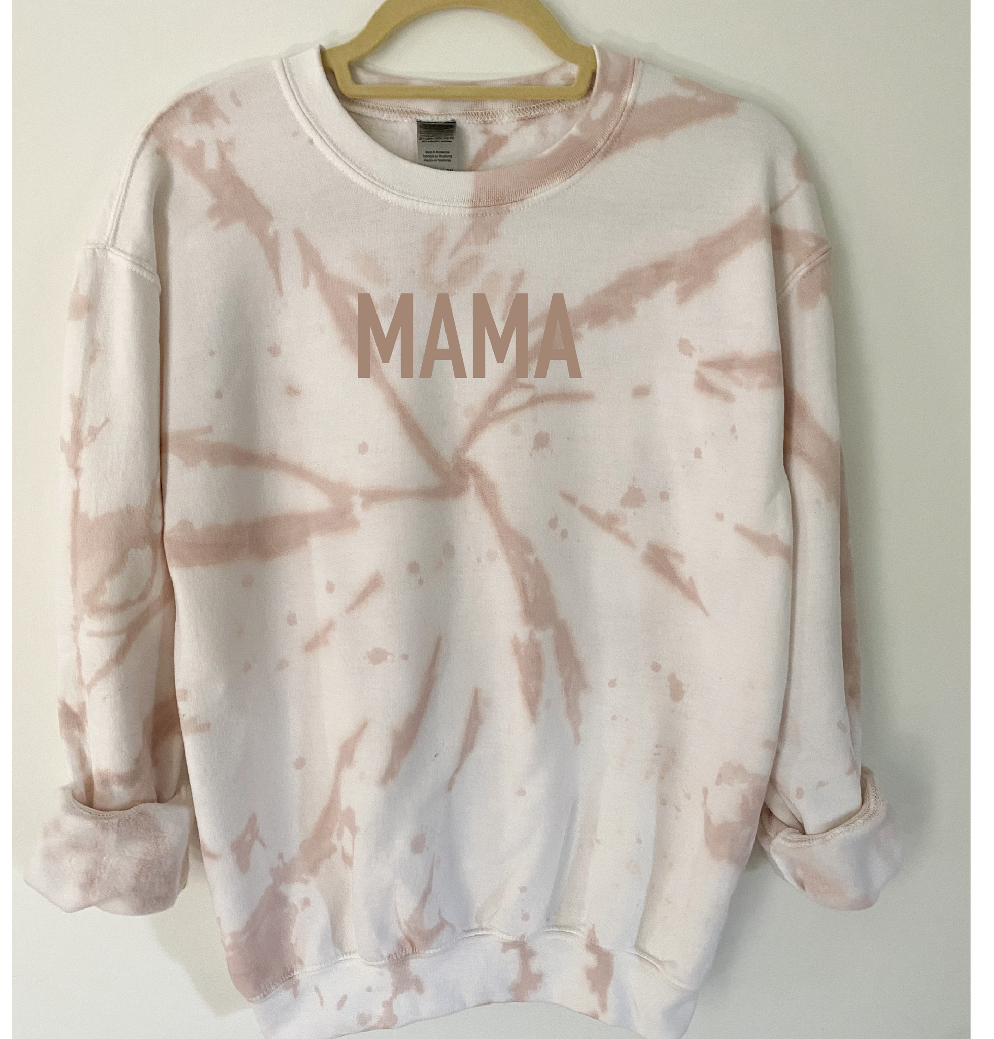 "MAMA" is ironed on with Premium Vinyl. Soft, stretchable and fade resistant. Turn the garment inside out and machine wash with cold water. Tumble dry low.
